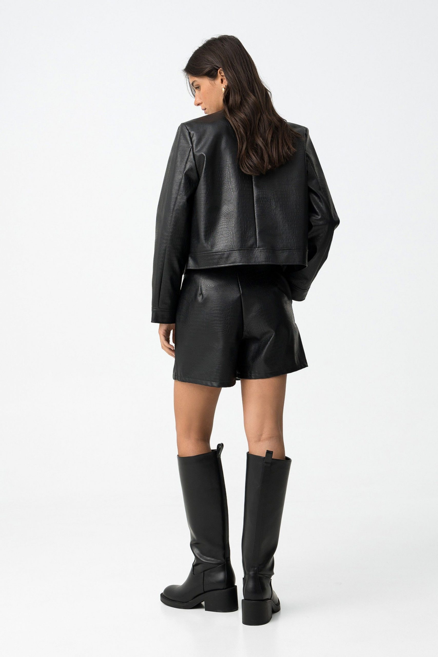falda pantalón efecto cocodrilo con dos bolsillos frontales y cierre de cremallera lateral.